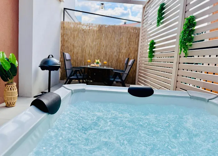 Gasten die in Happy Home appartementen verblijven, kunnen profiteren van voorzieningen, zoals een complete keuken, evenals een eethoek buiten. Geniet van uw verblijf op een terras.